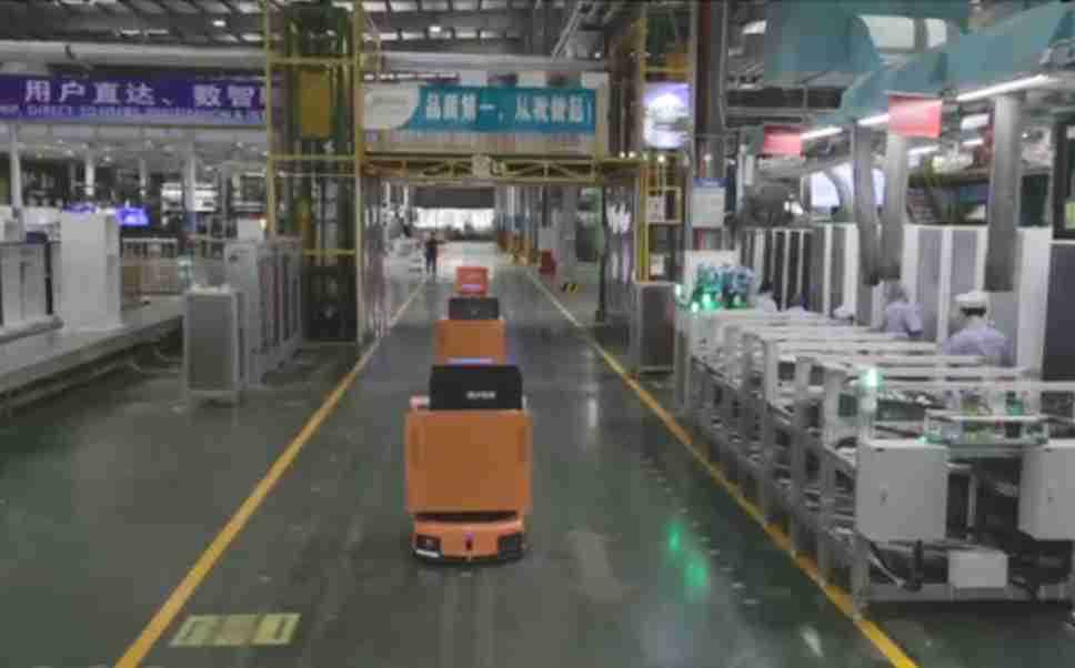 为车载冰箱物流配送打造的智能解决方案,,包含产中物流通过潜伏举升AMR搬运至线边,,,产后成品物流智能仓储,,,流程包含产中物流智能齐套入库,,,,线边安灯叫料AMR智能配送至线边,,,成品入库、、、、出库,,通过无人堆高车机器人,,,,智能仓储管理替代人工作业管理,,,,实现更高存储、、、、更高效率、、、、更具柔性化的解决方案。。。