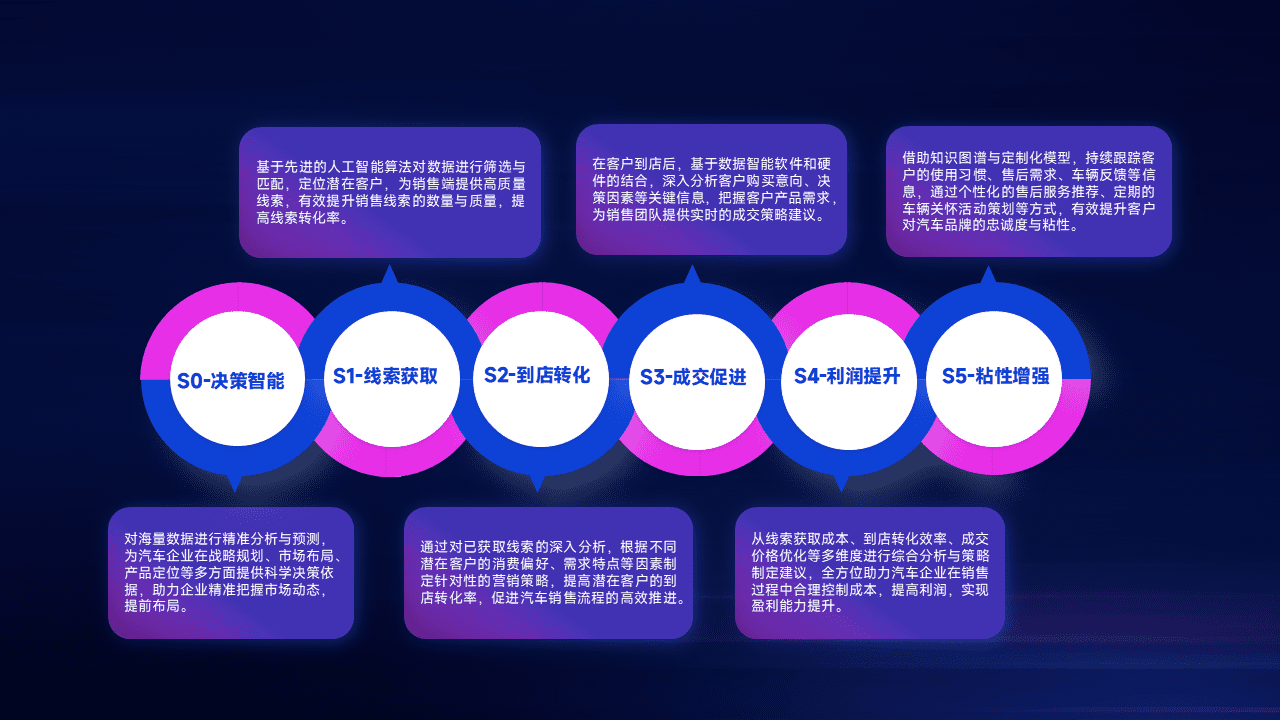 通过拓宽潜在客户来源、、、优化线索分配并提高到店转化率,,以增强销售效率。。。。同时,,,,利用线索数据不断优化分析模型,,,,有效提升转化率,,扩大营销影响力。。